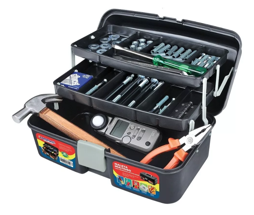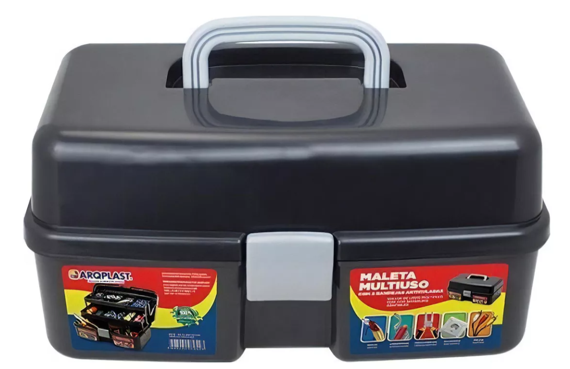 Caixa Maleta Para Ferramentas Multiuso Preta Com 2 Bandejas Super Reforçada Pesca