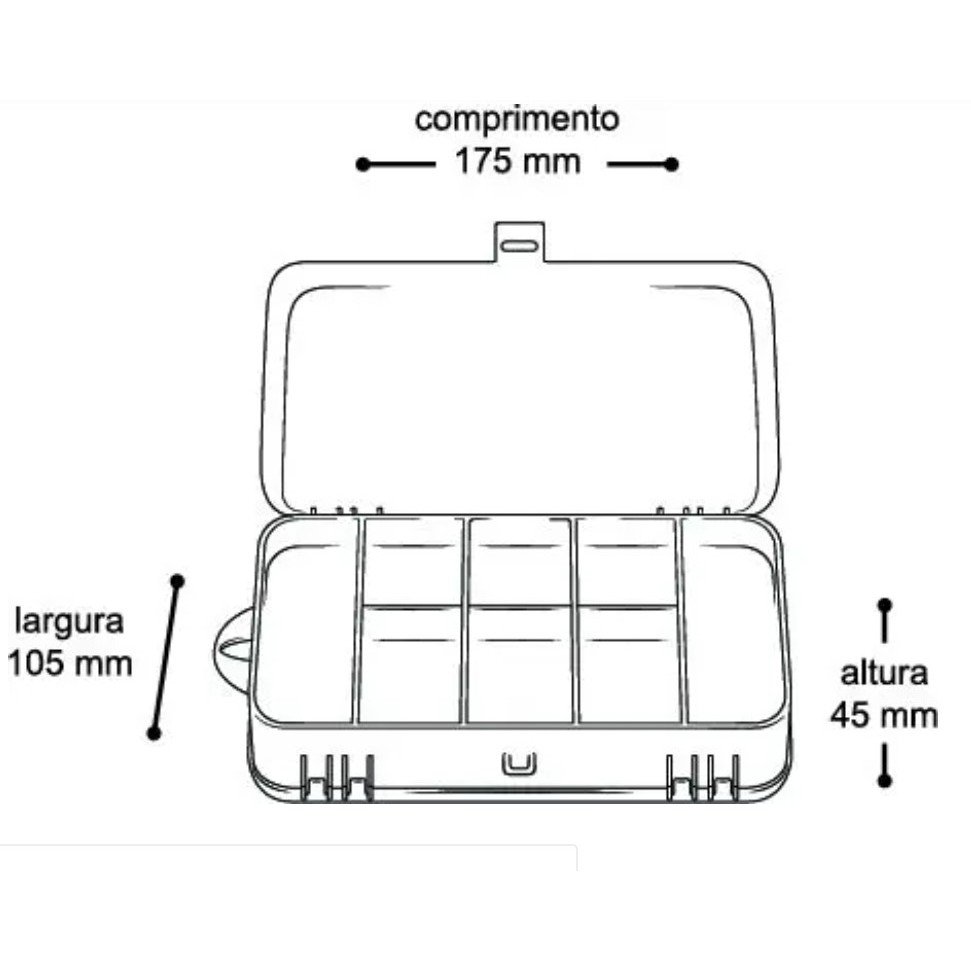 Seu design funcional foi pensado para otimizar espaço e garantir praticidade. Cada divisória pode ser utilizada para guardar anzóis, iscas, parafusos, peças pequenas, miçangas, botões, componentes eletrônicos ou acessórios de pesca, entre outros. É a solução ideal tanto para quem busca uma maleta de pesca prática quanto para quem precisa manter o ambiente de trabalho ou hobby sempre organizado.