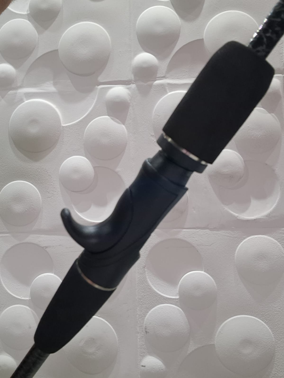 O design do cabo (grip) é moderno e funcional. Feito em E.V.A de alta densidade, ele oferece conforto e uma pegada firme (grip), mesmo quando molhado. O formato bipartido (split grip) não é apenas estético; ele ajuda a reduzir o peso total da vara e melhora o equilíbrio do conjunto (vara + molinete).