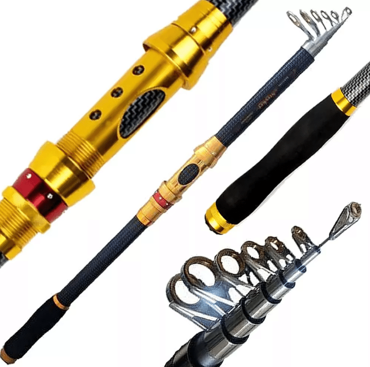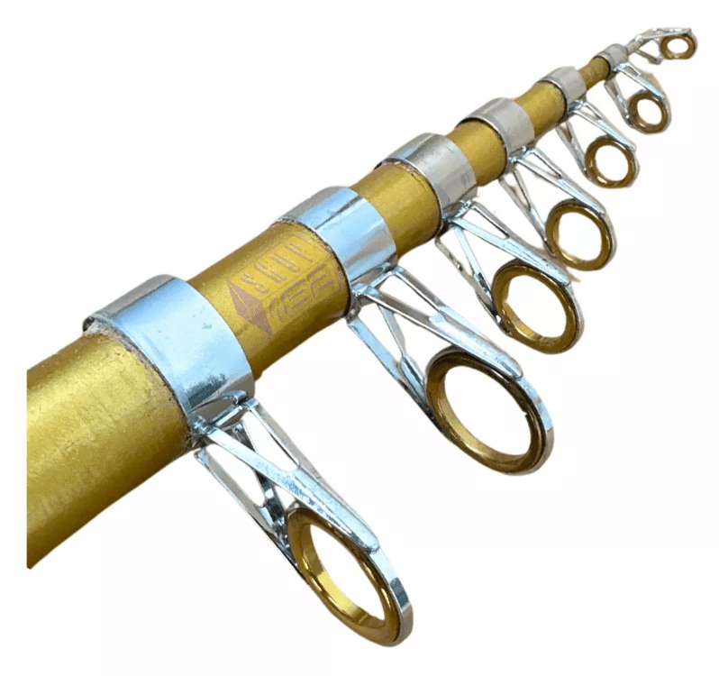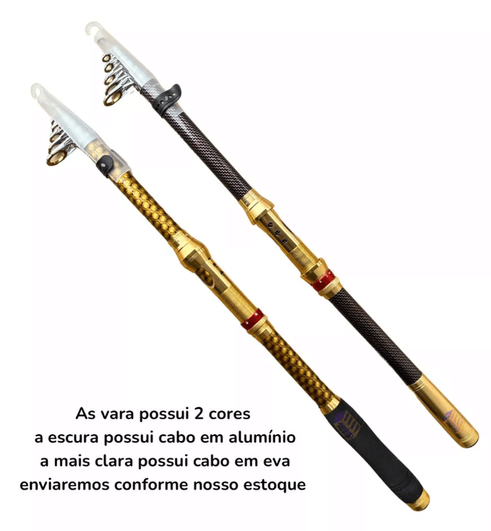 O design telescópico permite que a vara seja facilmente transportada e armazenada, tornando-a ideal para pescarias em locais remotos ou para quem deseja compactar seu equipamento. Seu acabamento é refinado, oferecendo um toque moderno e elegante, enquanto as ponteiras e passadores garantem uma performance suave durante o arremesso e a recuperação.